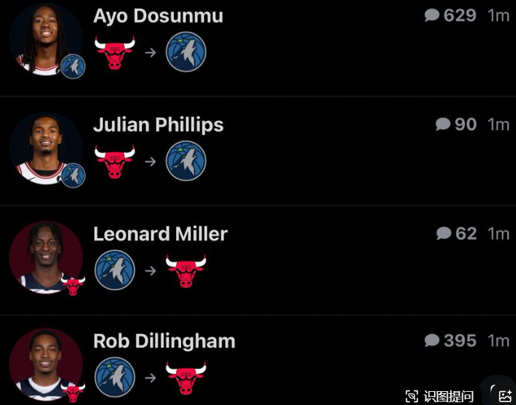 公牛将道苏姆、菲利普斯送至森林狼,换迪林厄姆+伦纳德·米勒+4次轮