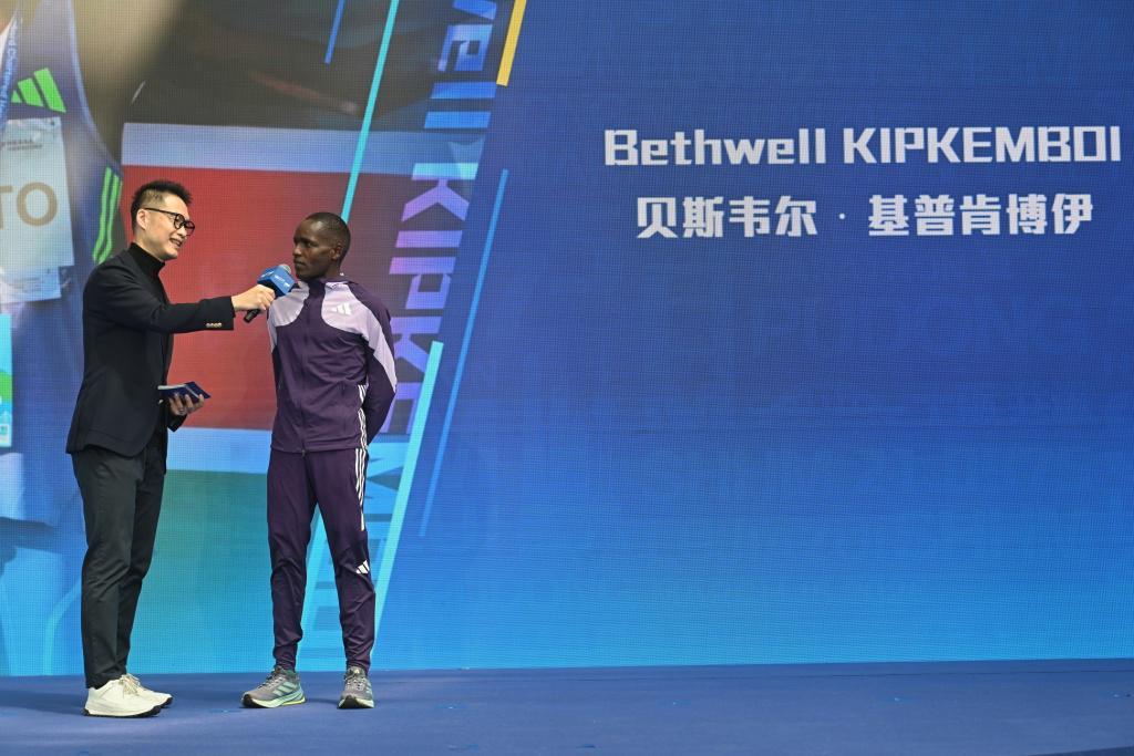 世界田联金标跑者基普肯博伊表示,希望在上海半马刷新自己的PB。 澎湃新闻记者 朱伟辉 摄